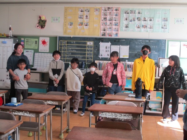 給食の後、日頃の感謝の気持ちを込めて感謝状と、歌のプレゼントをしました。音楽で練習した「ロックマイソウル」を自分の好きなパートに分かれて合唱しました。
