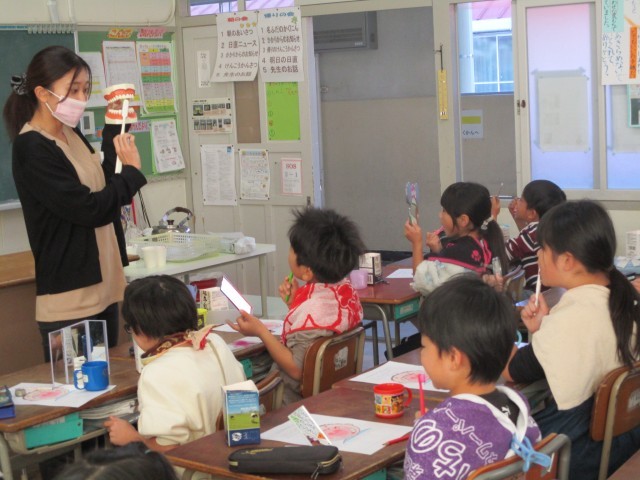 歯科衛生士の方に来ていただき、6才臼歯の大切さを教えていただきました。