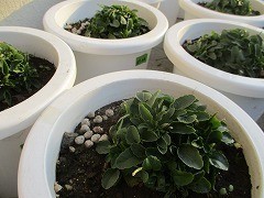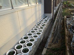 4~6年生が植え替えた一人一鉢運動のビオラの苗は、寒さの中でも少しずつ成長しています。たくさんつぼみをつけるようになりましたが、2月初旬まではつぼみを取り、卒業式にたくさん花を咲かせるよう世話をしていきます。