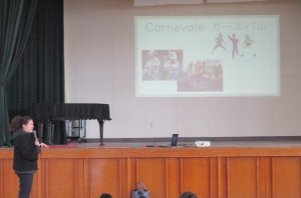 今日は国際交流で、イタリアの先生から世界遺産のお話を聞きました。