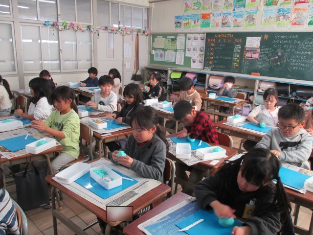 粘土を使って、自分をつくりました。ねじったりひっぱたりしながら形を作り、組み立てました。次回は、動物を作ります。