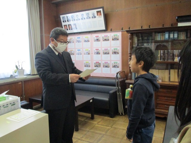 漢字計算コンクールの表彰式が校長室で行われました。友達の頑張りを拍手でたたえ合いました。