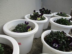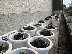 一人一鉢運動で植えたビオラが、少しずつ咲いてきています。12月1月は、花が咲かないようにつぼみを摘み取っていました。卒業式まであと1か月ほどとなり、式に花が咲きそろうように続けて世話をしていきます。