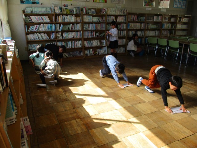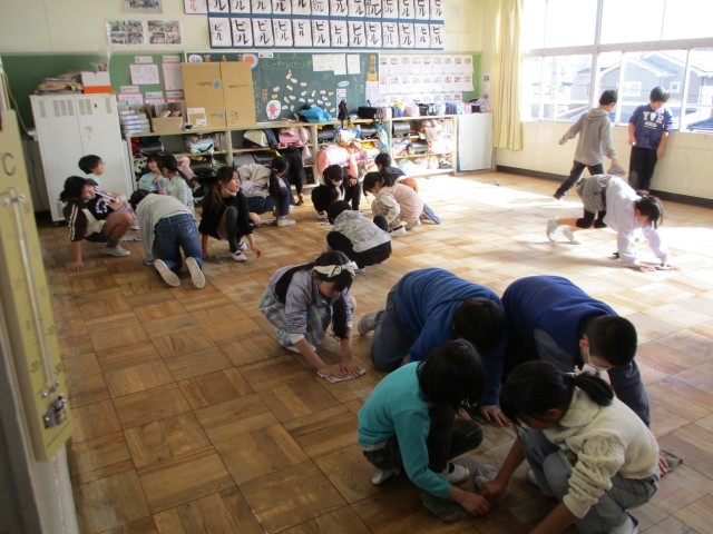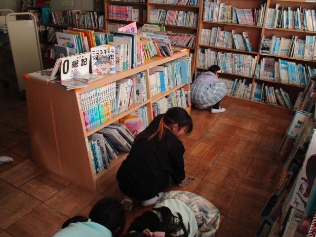 今日の教室の油引きに向けて、床を水拭きをしました。1年間の汚れをしっかり落とすように、細かな汚れを見落とさず、みんなで協力しながら雑巾をかけました。みんなが使う図書館もピカピカに!明日からは乾拭き雑巾でより一層ピカピカに磨いてくださいね。