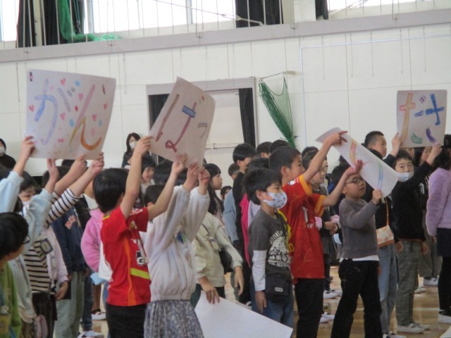 2年生はお別れ会で、6年生のかっこいいところ、6年生に感謝しているところを伝えました。