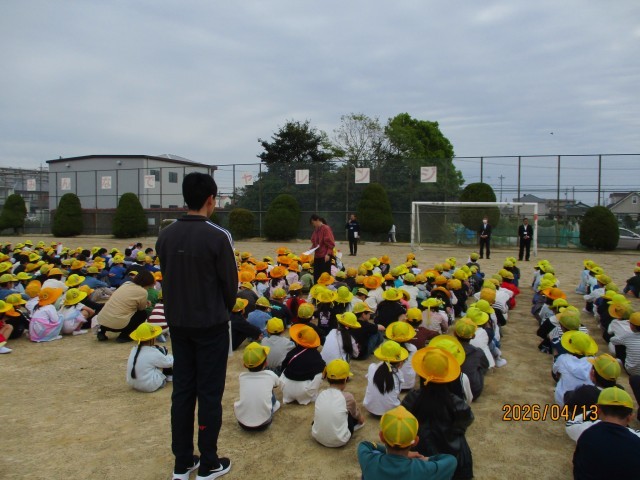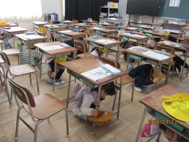 今日は、地震を想定しての避難訓練が行われました。『お・は・し・も・ち』のルールを守りながら避難することができました。避難してから、校長先生のお話もしっかり聞くことができ、1年生のお手本となっていました。