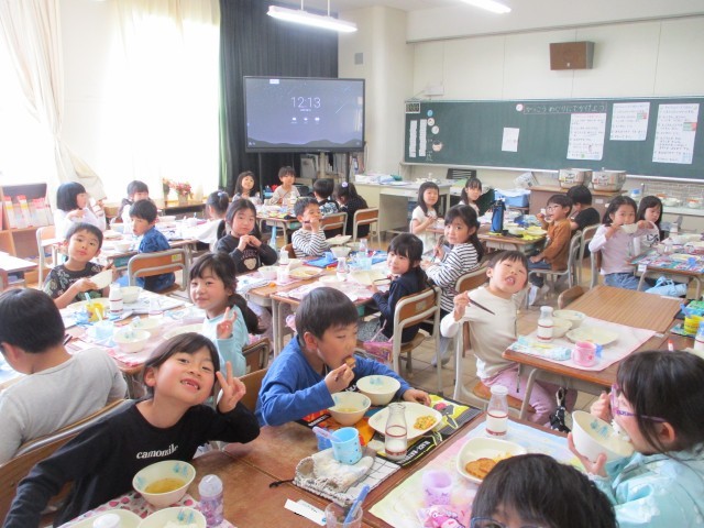 音楽で「かもつれっしゃ」をしたり、給食をみんなで準備して食べたりと、学校生活に徐々に慣れてきて、楽しそうに過ごしています。