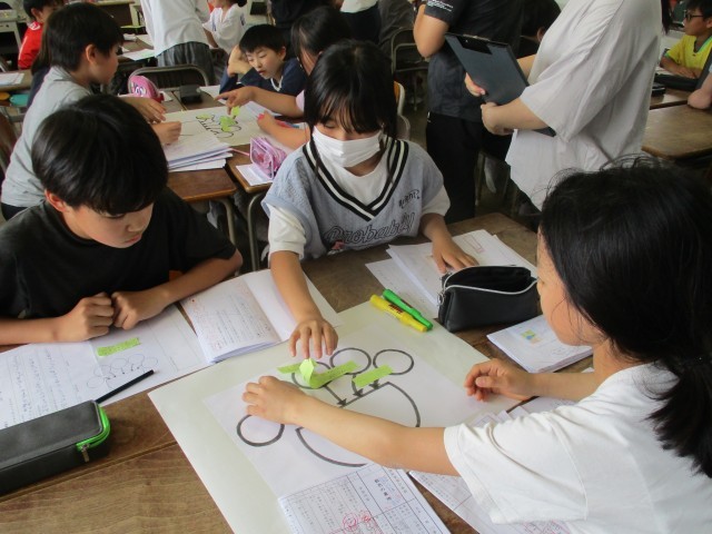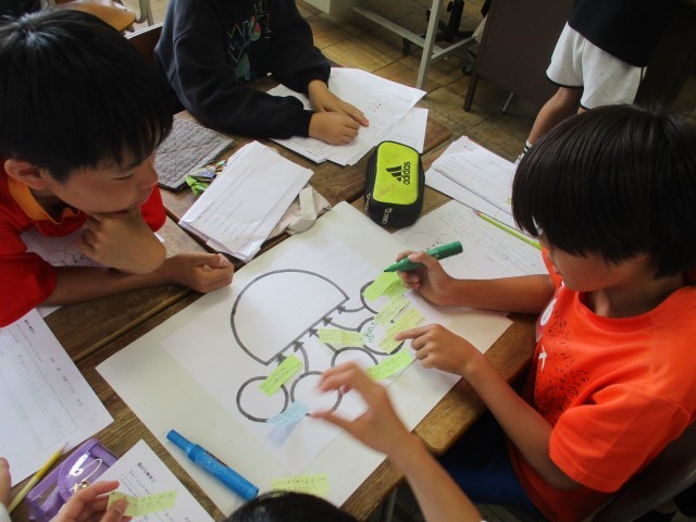 国語の時間は、「銀色の裏地」の物語を学習しています。主人公が新しいクラスメイトとの交流を通し、心情が変化していく様子を読み取りました。