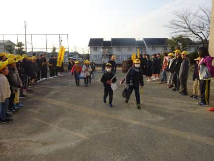 本日、コミュニティ挨拶を行いました。地域・PTA・中学校・小学校が一体となり、あいさつ運動を展開することができました。中学生の大きな挨拶の声に、小学生も元気いっぱいあいさつを返すことができ、とても気持ちの良い一日のスタートを切ることができました。この活動を通して、支え合うことのできる素晴らしい地域に、また一歩近づいた気がします。