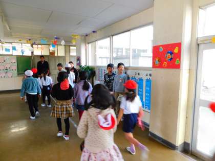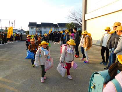 今日から、高学年や中学生が校門に立って挨拶をする、あいさつ運動が始まりました。1年生も、元気に大きな声であいさつすることができました。