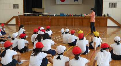 先生からサーブとレシーブの仕方を教えてもらい練習をしました。