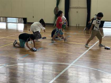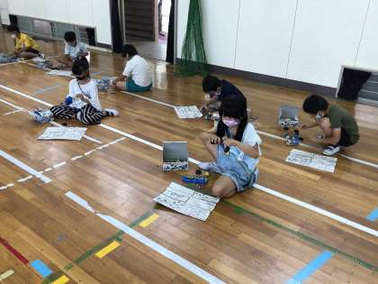 理科の授業で使用している車を体育館で走らせました。