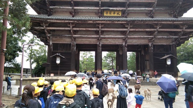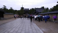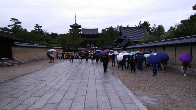 法隆寺につきました。雨が降っていますが、これから見学です!