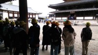 法隆寺の見学です。みんなガイドさんの話をしっかり聞いていますね!