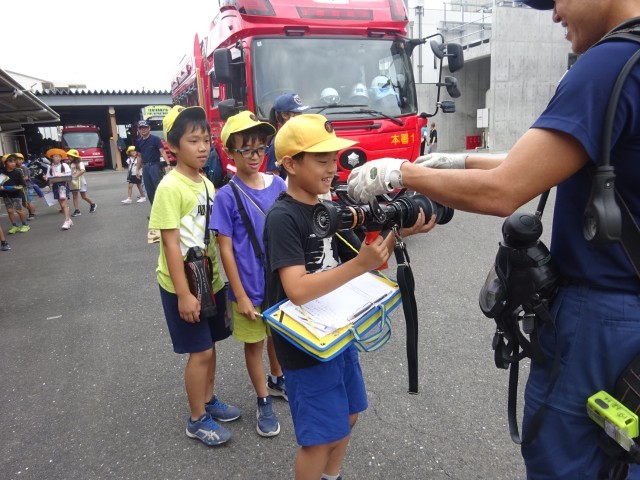 また、一宮消防署の職員の方々、大変お世話になりました。3つのグループにわけてローテーションで見学できるようにしてくださったり、出動した救急車に代わる指揮車を用意してくださったりして、きめ細やかに対応してくださり、本当にありがとうございました。機械をもつ体験ができていない子どもが出ないようにと配慮してくださったことも感激でした。おかげさまで、とても有意義な体験学習ができました。お忙しい中、お時間をいただき、ありがとうございました。