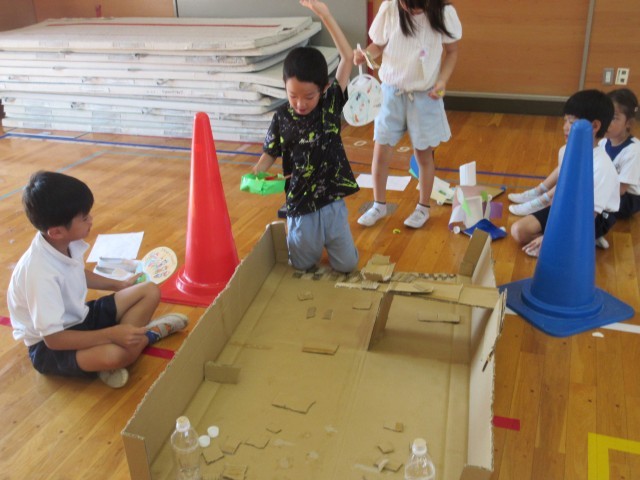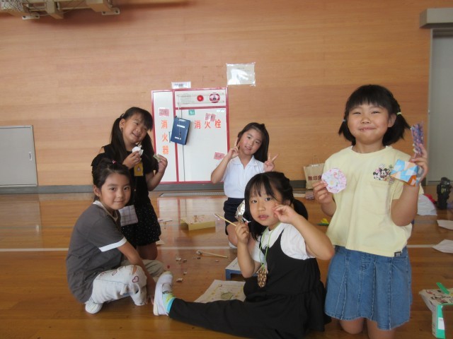 2年生が主催してくれた「おもちゃフェスティバル」に1年生が参加しました。2年生の手作りのおもちゃで遊んだり、遊び方を教えてもらったりして楽しく活動しました。たくさん景品も貰って笑顔いっぱいの時間になりました。