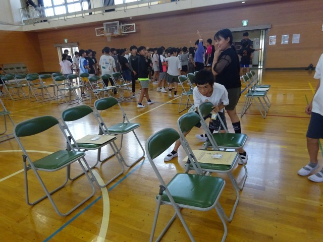 椅子を運んでならべるだけでなく、封筒や番号札をきれいに置いたり、机がそろって置いてあるかを確認したりして、来校する方の気持ちを考えて行動できました。さすが、高学年!!すばらしい姿でした。