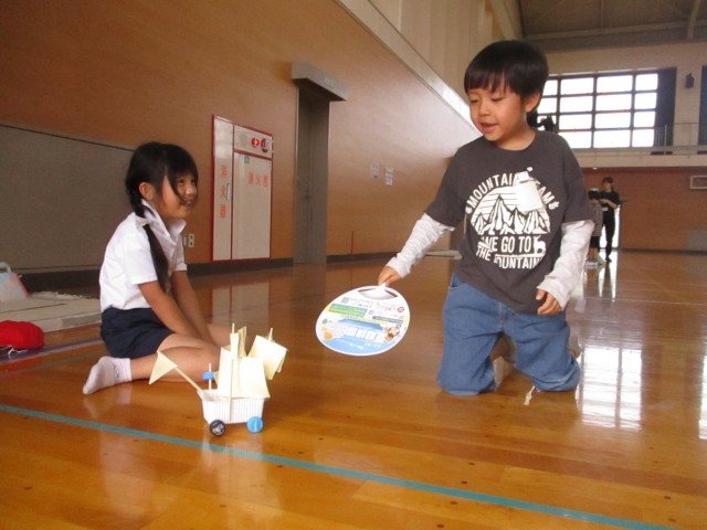おもちゃフェスティバルがあり、2年生が1年生を招待し一緒に遊びました。