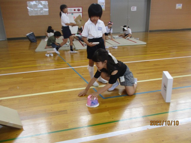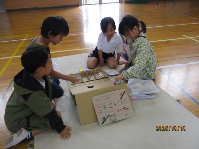 おもちゃフェスティバルに1年生を招待しました。今日に向けて、おもちゃを工夫して作り、景品も数多く用意しました。終わった後、「たくさんの子が来てくれて、うれしかった」「途中で景品がなくなったので、あせった」「看板を持ってまた呼びに行ったら、またいっぱい来てくれた」「1年生が喜んでくれて、よかった」など、つぶやいていました。
