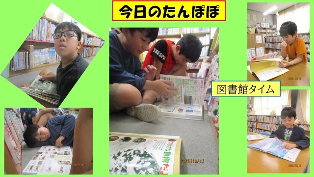 運動会の練習で図書館に行けなかった子もいましたが、図書館で本を読みました。いつも同じ種類の本を読んでいる子には、他の種類の本にも挑戦してほしいと思っています。