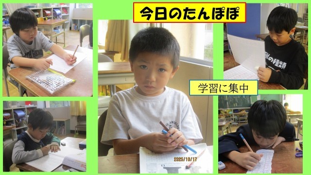 運動会の練習の一方で、学習にも集中していました。真剣な表情で学習しています。タイパのよい学習をめざしています。
