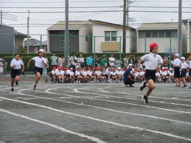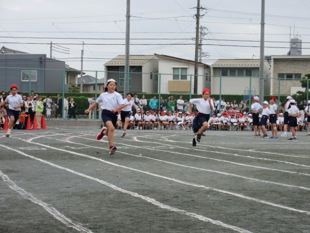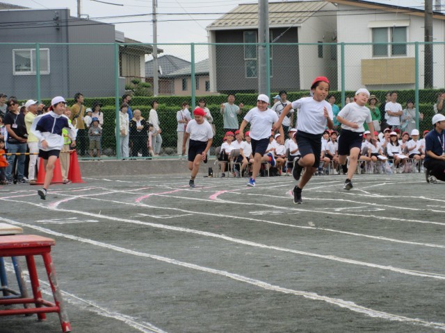 5年生の徒競走では、一人一人が力いっぱいゴールを目指し、全力の走りを見せてくれました。