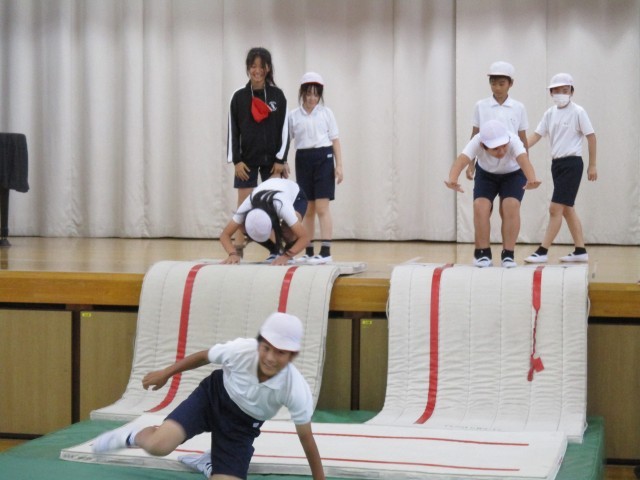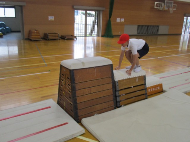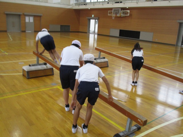 今日は、今後行っていく跳び箱運動に向けて準備運動を行いました。