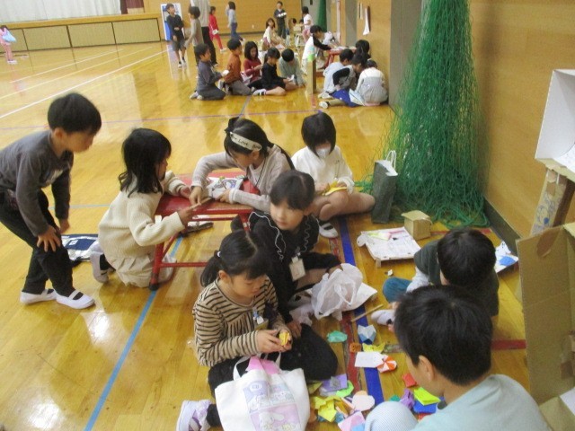 今日は待ちに待ったおもちゃフェスティバルの日でした。昨日招待状をもらって、1時間目に体育館で6種類の手作りおもちゃでたっぷり遊ばせてもらいました。おみやげに素敵な折り紙細工をいただきました。2年生の皆さん、楽しい時間をありがとうございました!来年は自分たちががんばります!