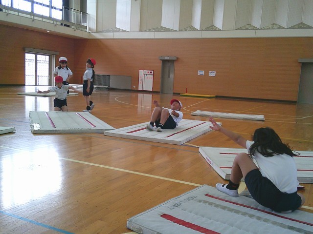 おもちゃフェスティバルだけなく、英語の授業も頑張りました。今回もアルファベットを楽しく覚えました。体育では、マット運動に入っています。カエルの足うち、アンテナ、前転など、いろいろな技に挑戦しました。