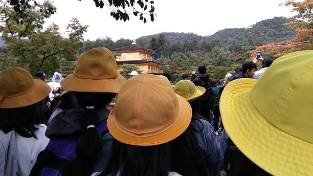 金閣寺に到着です。雨が止みました。水面に映る金閣寺が美しかったです。