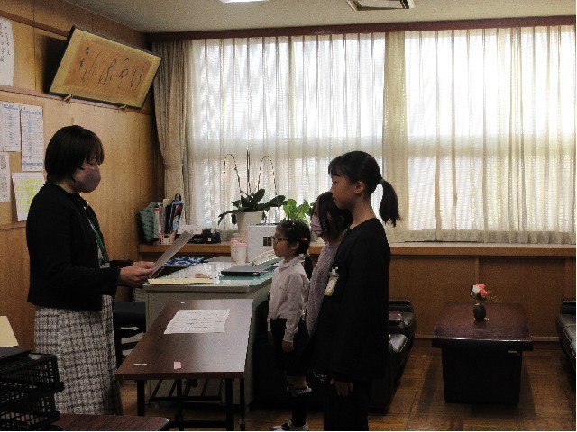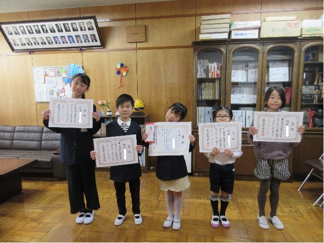 今日の朝礼では、ポスター・書写の表彰伝達がありました。立派な返事をして、校長先生から賞状を受け取りました。
