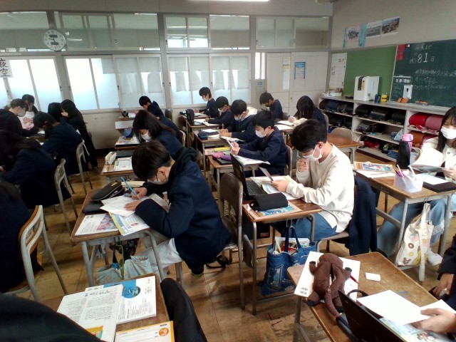 どの授業でも集中して取り組んでいました。修学旅行を終えた今、学習に全力で向かう事ができる姿、とても立派ですね。