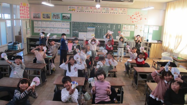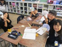 国語では、紙コップ花火を作りました。素敵な模様が作れて嬉しそうでした。