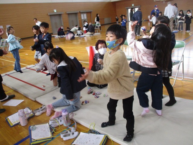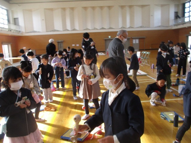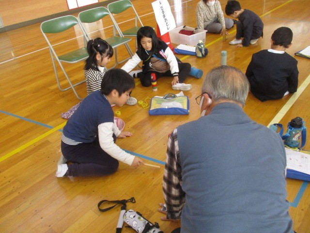 今日は むかしあそびのかいが 行われました。子どもたちは この日をとても楽しみにしていました。重陽クラブのおじいちゃん、おばあちゃんたちも、 1年生に会えることをとても楽しみにしてくださっていたそうです。さいしょに 練習していた けん玉のわざを 見ていただきました。そのあと、一人3つですが、むかしあそびを 優しく教えていただきました。