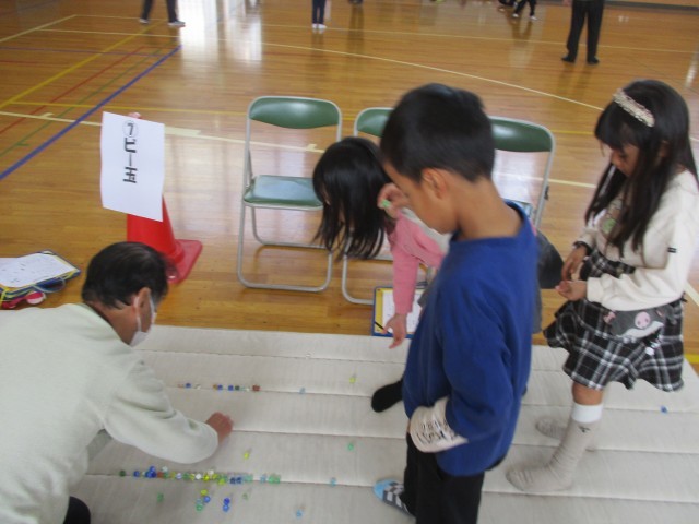 ビー玉では知らない遊び方を教えていただいたり、はねつきで一緒に勝負したり、短い時間でしたがみんな楽しんでいました。優しく丁寧に教えてくださるので、子どもたちはすぐコツをつかんで上手に遊んでいました。
