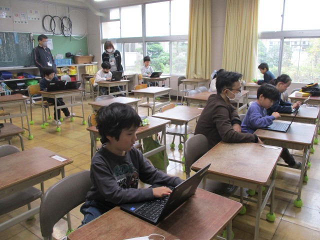 1時間目の「クロムブック活用法」では、「しりタイピング」をしました。語彙力を増やしながらタイピング練習ができるもので、大人も興味を持てるような内容でした。小文字と大文字が難しい児童も頑張ってタイピングに取り組んでいました。