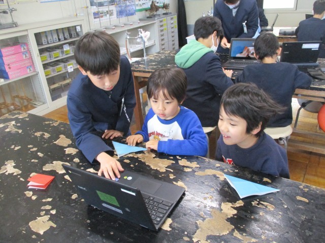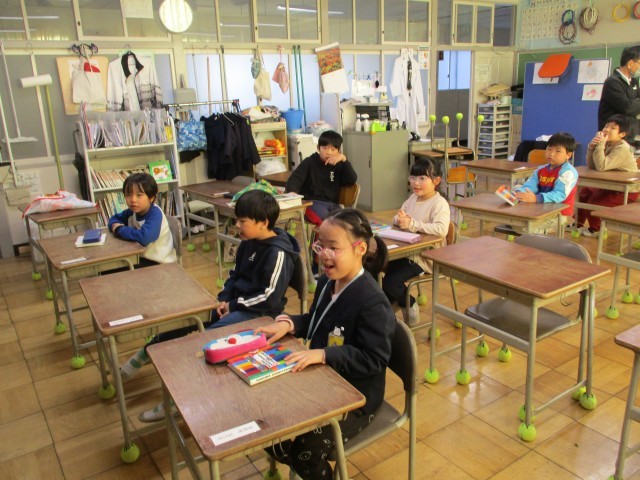 今日は朝の時間に、「一人一鶴運動」の鶴をペア交流で作りました。6年生のお兄さんに鶴の折り方を教えてもらって嬉しそうでした。