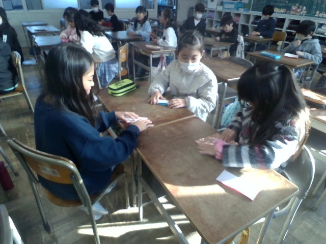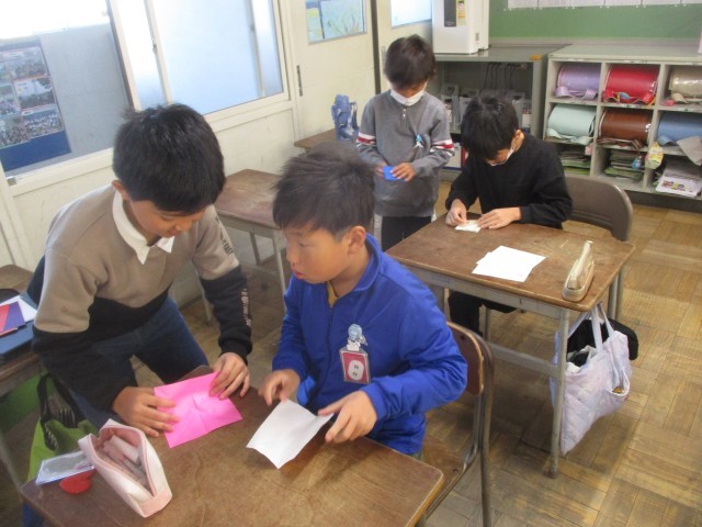4年 鶴の作り方をペアの子に教えたよ 11/20