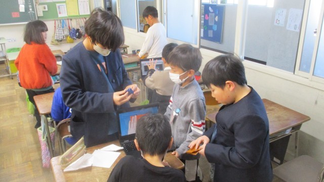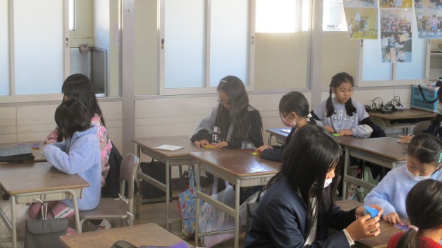 今日はペアで鶴を折りました。お兄さん、お姉さんと久々に触れ合えて子どもたちは嬉しそうでした。