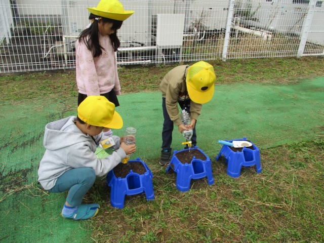 チューリップの球根を植えました。何色の花が咲くかな。春になるのが楽しみですね。