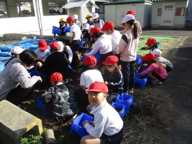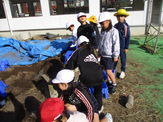 あさがおの植木鉢にチューリップの球根を植えました。カラスにねらわれて、いたずらをされるので、西側の中庭に移動させました。カラスは賢いので、気を付けて育てます!