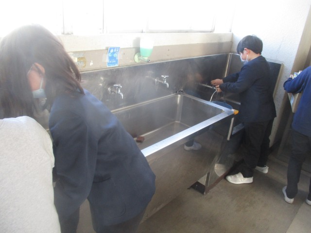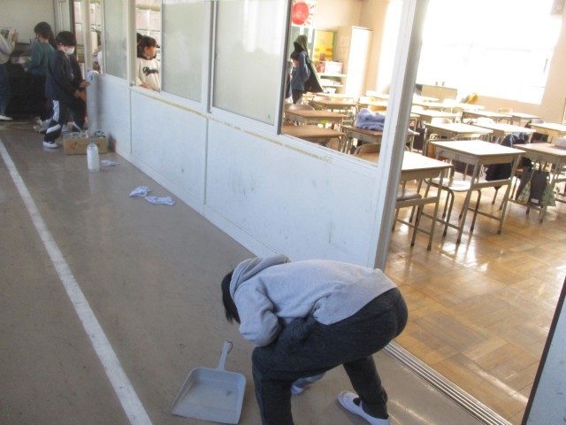 今日は掃除の時間が長めにとってあったので、普段できない隅々まで掃除を行いました。写真のように手洗い場や廊下の白線もピカピカに磨き上げていました。冬休みまであと少しとなり、大掃除も終え、清掃された校舎とともに清々しい気持ちで終業式を迎えられそうです。