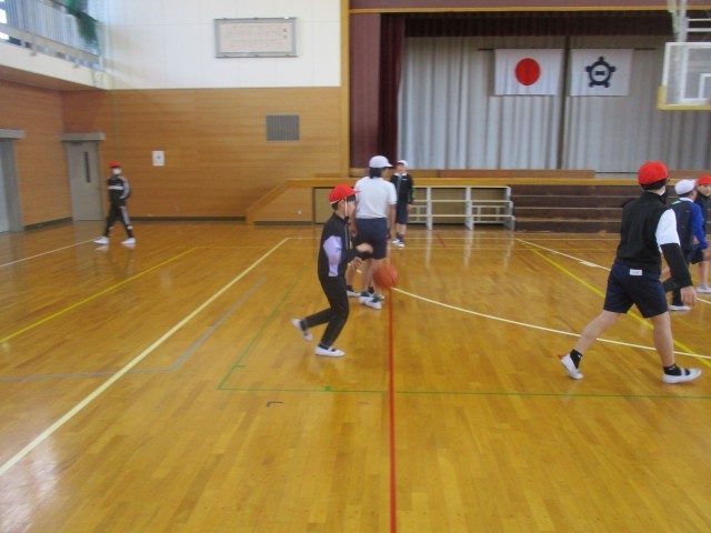 今日の体育は、6年生がバスケットボールのハーフコートゲームに挑戦しました!