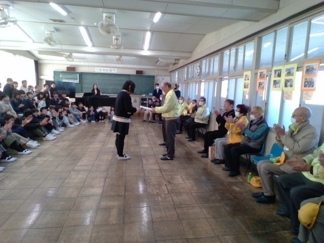 1年生・2年生からのメッセージをお渡しし、感謝の気持ちを込めて「旅立ちの日に」を歌いました。