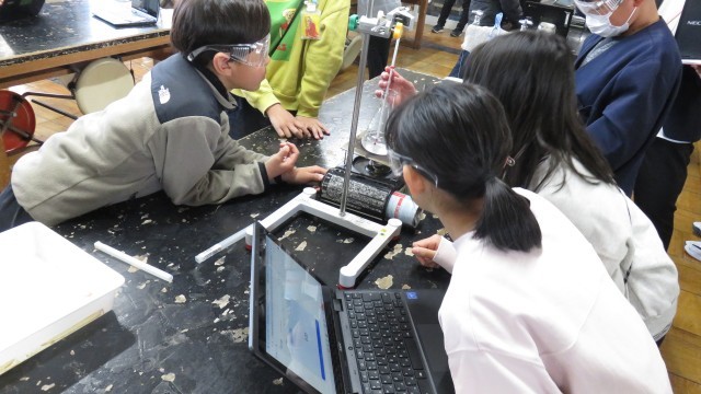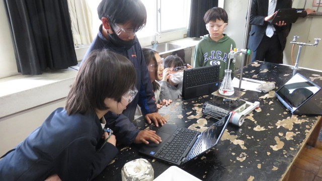 今日は、理科の授業で水の温度は何度まで上昇するのかの問いを基に実験を行いました。班で協力して実験を行い、自分の立てた予想と比べて楽しむ様子が見られました。