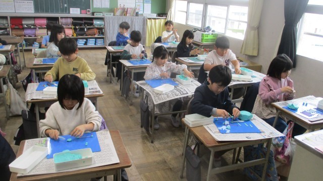 算数は「はこの形」の授業に入っています。工作用紙、粘土玉、ストローを使って、はこの形をつくりました。考えて作りましたね。