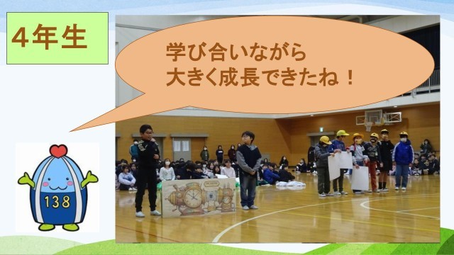 その学年も、友達同士で話し合って学んだり、力を合わせて準備や発表をしたりする姿があり、すばらしく思いました。