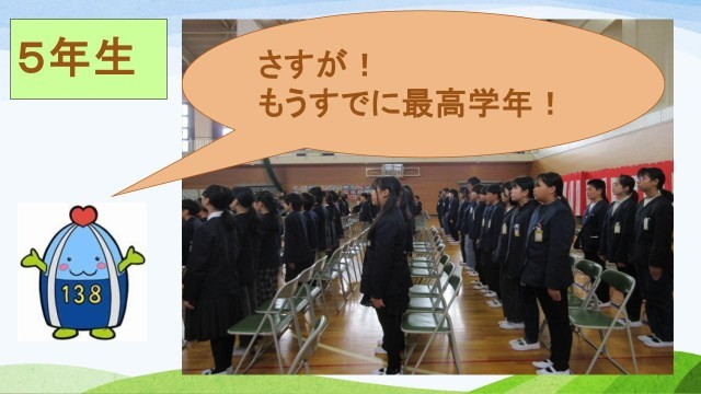 特に5年生の卒業式に臨む姿のすばらしさを全校に紹介しました。最高学年となる心構えがもうできていますね。頼りにしています!!