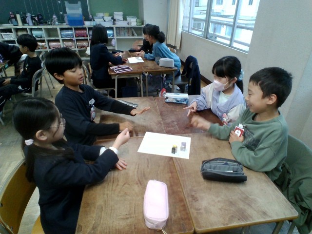また、初めての班活動で、「新学期すごろく」を行い、マス目に書かれたお題に挑戦しています。友達と協力したり、励まし合ったりする姿は、とても微笑ましい光景でした。新しい仲間との絆が深まる、素晴らしい時間となりました。