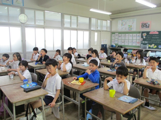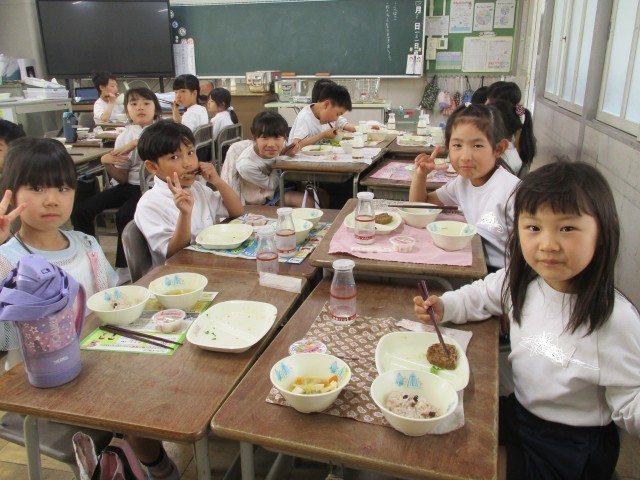 献立表を配った日から、ずっと楽しみにしていたお祝いデザートが出ました。「新しい学年になったお祝いだよね」と話す子がいました。学校生活を1年間終え、自らをお祝いしながら味わいました。